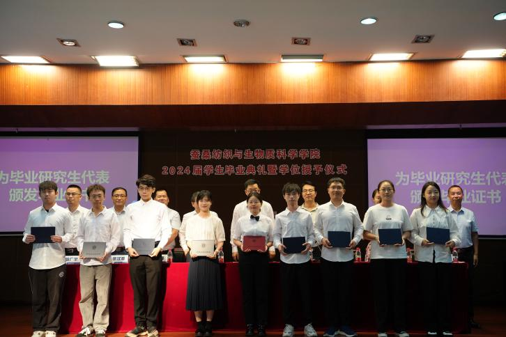 学院副院长蓝广芊、赵天福分别宣读研究生、本科生毕业决定,就坐领导为毕业研究生、本科生代表颁发毕业证书。