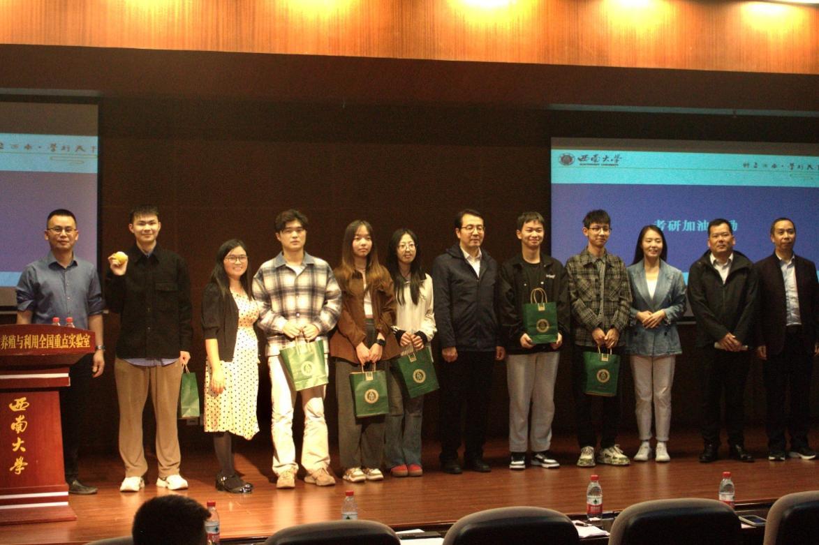 随后,学院领导和老师为考研学生送上暖心祝福大礼包,祝愿学院100余名考研考生“苹”稳上岸,一战“橙”硕。