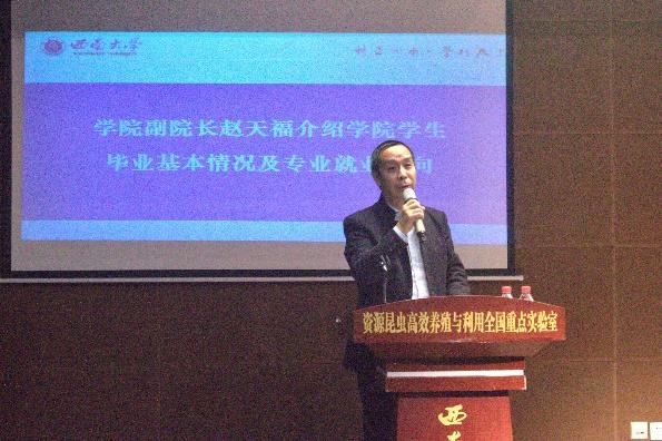 会议伊始,学院副院长赵天福就学院学生毕业基本情况与专业就业方向进行了介绍,结合近两年学院毕业生毕业、学位授予情况数据及目前毕业年级学生学分完成情况进行分析,强调毕业生要找准自身定位,做好职业规划。