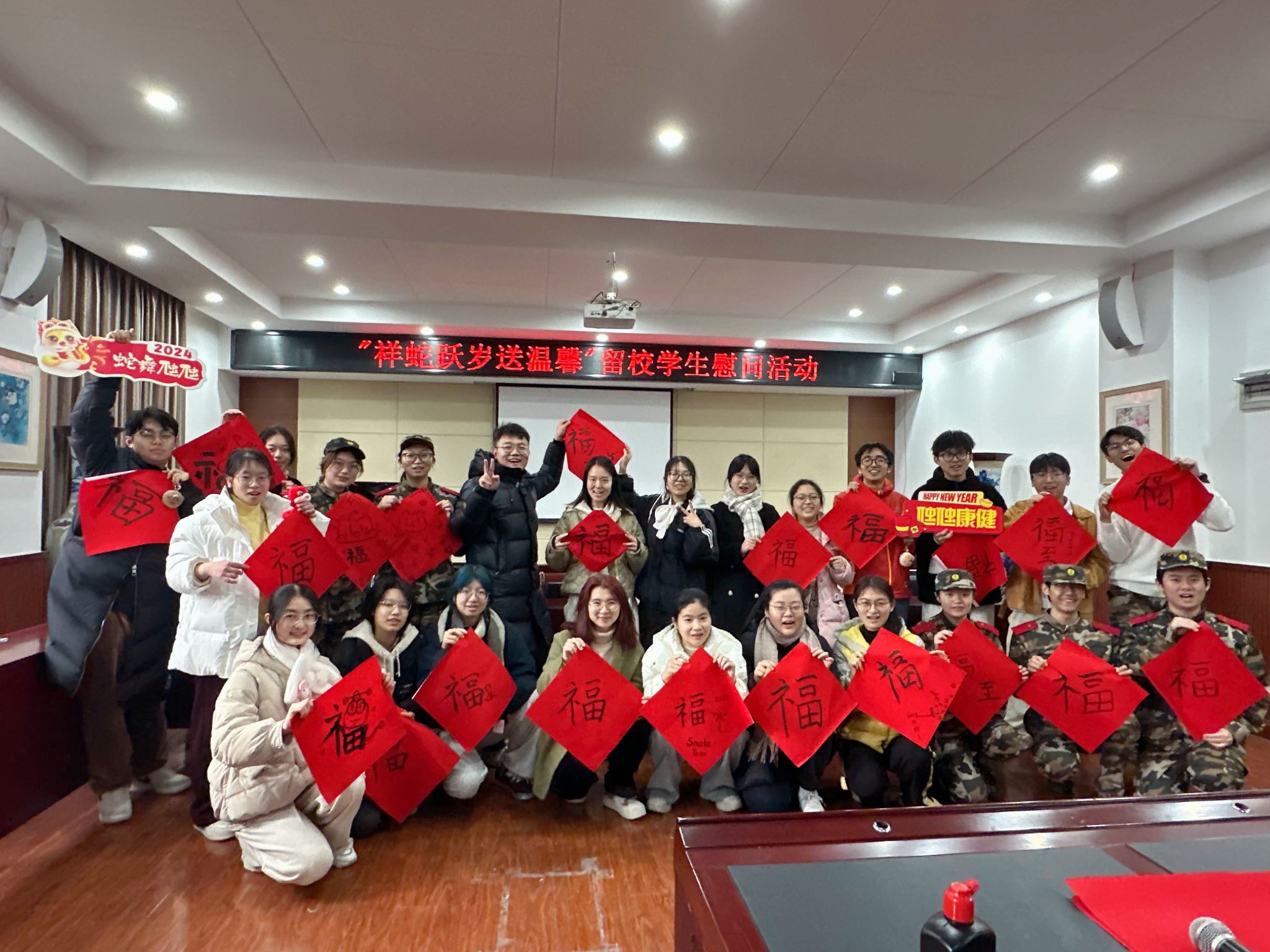 除了开展系列新春慰问活动外,学院还对寒假留校学生提供了必要的专业心理支持和朋辈学业帮扶等暖心留校服务,并持续关注留校同学们的身心健康,确保留校学生过个欢乐祥和的新春佳节。