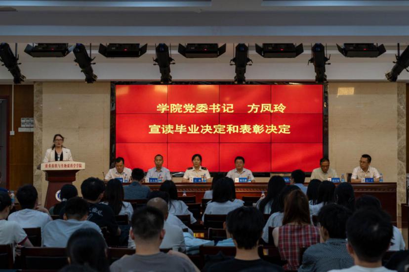 学院党委书记方凤玲宣读毕业决定和表彰决定,2025年学院共有57名研究生、246名本科生顺利毕业,有40名本科学生、9名研究生获得第一版主 优秀毕业生荣誉称号,有8名本科生获得第一版主 优秀毕业论文(设计)作者荣誉称号。随后主席台就座领导为毕业研究生代表、毕业本科生代表颁发毕业证书,并为优秀毕业生、优秀毕业论文获奖代表颁发荣誉证书。