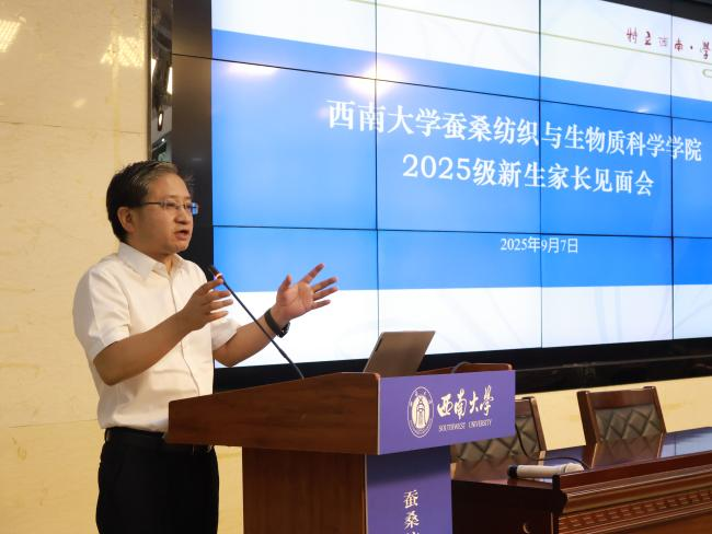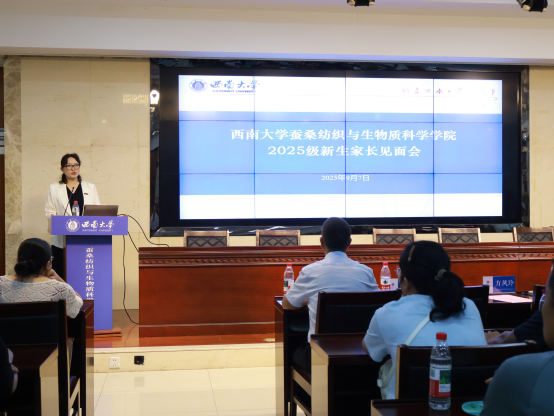 党委书记方凤玲首先致欢迎辞,对各位新同学及家长的到来表示最热烈的欢迎!“百年西大,薪火相传”,方书记以即将到来的学校120周年校庆为切入点,详细介绍了第一版主 和学院的深厚底蕴与发展历史、学科特色和发展成就。在学院人才培养方面,方书记强调“大学是学生成长的‘第二故乡’”,学院始终秉持“博学慎思、明辨笃行”院训和“生生不息、经天纬地”的学院精神,坚持以立德树人为根本任务,着力培养具有家国情怀、创新精神和实践能力的复合型人才。在家校共育方面,方书记向家长提出了三点希望:信任与沟通、支持与引导、协同与共建,指出“教育是一场学校与家庭的双向奔赴”,让我们共同助力学生完成从依赖到独立的转变,托起学生的新的人生篇章!