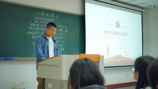学员代表、青年教师钱文良发言,感谢学院党委为大家提供学习机会,号召学员们以饱满的热情和精力投入学习,在学习和工作中不断提高自己,努力肩负起党赋予的重任。
