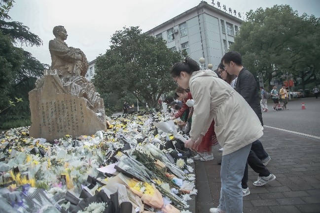 会后,与会同志到学校袁隆平院士雕像前进行了悼念。