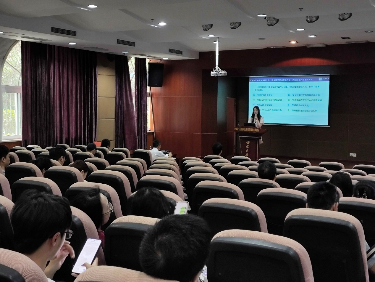 会上,教工第七党支部组织委员冯洁老师带领全体与会人员深入学习贯彻了中共中央总书记、国家主席、中央军委主席习近平在全国科技大会、国家科学技术奖励大会、两院院士大会上的重要讲话以及习近平总书记重要文章《开创我国高质量发展新局面》。高燕老师分享了近期科研与教学进展。