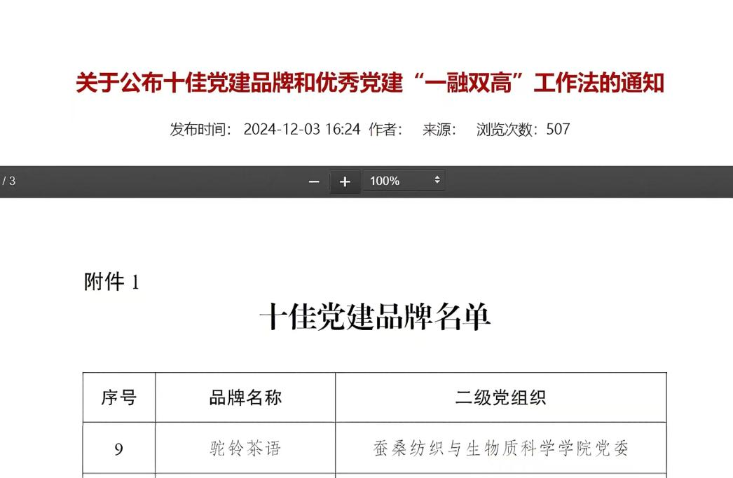 发布时间: 2024-12-11 18:21:06 已阅读:近日,在全校范围内组织的十佳党建品牌和“一融双高”工作法评选活动中,经过资格审查、专家评审和结果公示等程序,学院“驼铃茶语”品牌项目成功入选第一版主 十佳党建品牌名单。