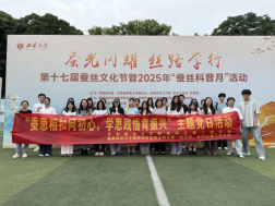 发布时间: 2025-05-28 17:06:34 已阅读:5月23日下午,学院本科生第一党支部、本科生第三党支部,联合马克思主义学院本科生第二党支部与绩镛言马读书小组,围绕“‘蚕’‘思’相扣问初心,学思践悟育振兴”主题,开展了一场别开生面的联合党建活动。此次活动将“专业 + 党建”深度融合,充分展现出青年党员扎根专业、助力乡村振兴的使命担当,党员同志们在活动中全程发挥先锋模范作用。