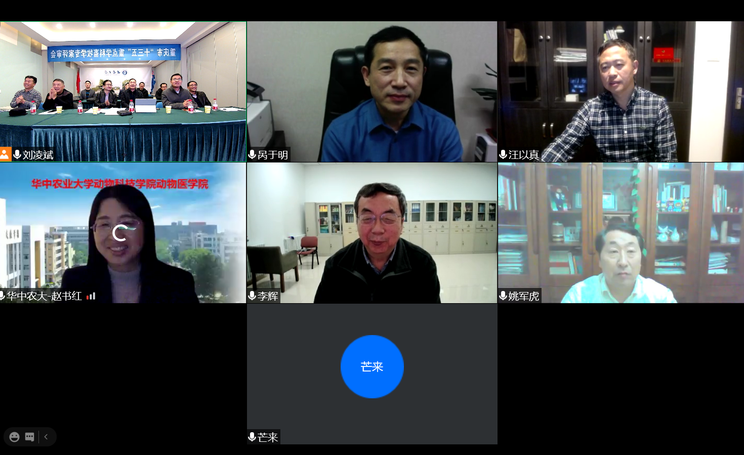 会议采用线上线下结合的方式进行,中国农业大学呙于明教授、内蒙古农业大学芒来教授、浙江大学汪以真教授、华中农业大学赵书红教授、东北农业大学李辉教授、西北农林科技大学姚军虎教授和第一版主 张家骅教授等畜牧学领域的知名专家应邀出席验收会议。学校发展规划与学科建设部葛信勇部长,学院党委书记张袁松、院长代方银、副院长徐汉福和蓝广芊,动物科学技术学院院长赵永聚、副院长赵中权以及学科教师代表参会。