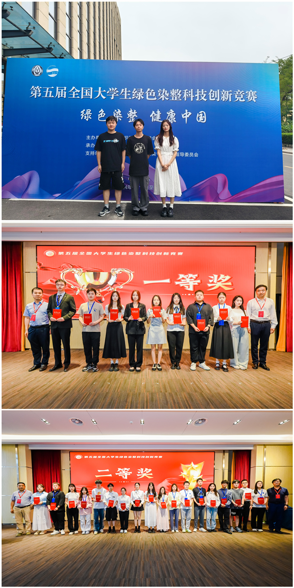 本届大赛以“绿色染整,健康中国”为主题,优选高效、低碳、节能、减排的新技术、新工艺,以保障人民健康为创新目标,共收到来自38所高等院校的422项作品,经过专家评审,遴选出128项作品入围决赛。决赛采用“汇报+答辩”的方式进行,经过激烈角逐,共评选出特等奖8项,一等奖40项,二等奖80项。全国大学生绿色染整科技创新大赛是轻工类专业规格最高、制度最全、覆盖面最广、影响力最大的赛事之一。此次大赛为高校纺织类专业学生提供了学习和交流机会,对于推广高质高效染整技术,挖掘和培养纺织创新人才,推动纺织行业绿色高质量发展具有重要意义。