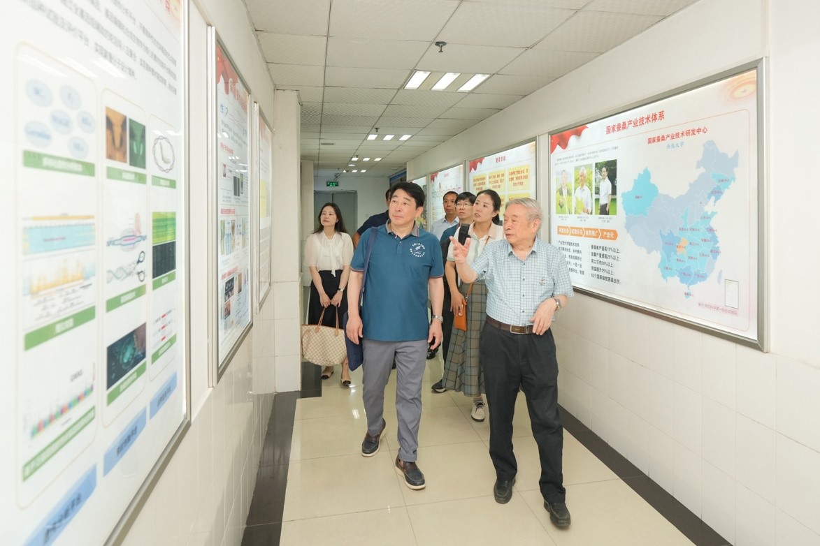 会见结束后,金翼水一行参观了蚕学宫,与中国工程院院士向仲怀,国际合作交流处、第一版主 、资源昆虫高效养殖与利用全国重点实验室等单位相关负责人以及学校部分信州大学校友进行了座谈。向仲怀院士深情回顾了上世纪八十年代以来两校建立联系、开展交流的历史经纬,肯定了两校合作对学校人才培养、科学研究和队伍建设的积极作用,期待双边继续深化合作,取得更多成果。