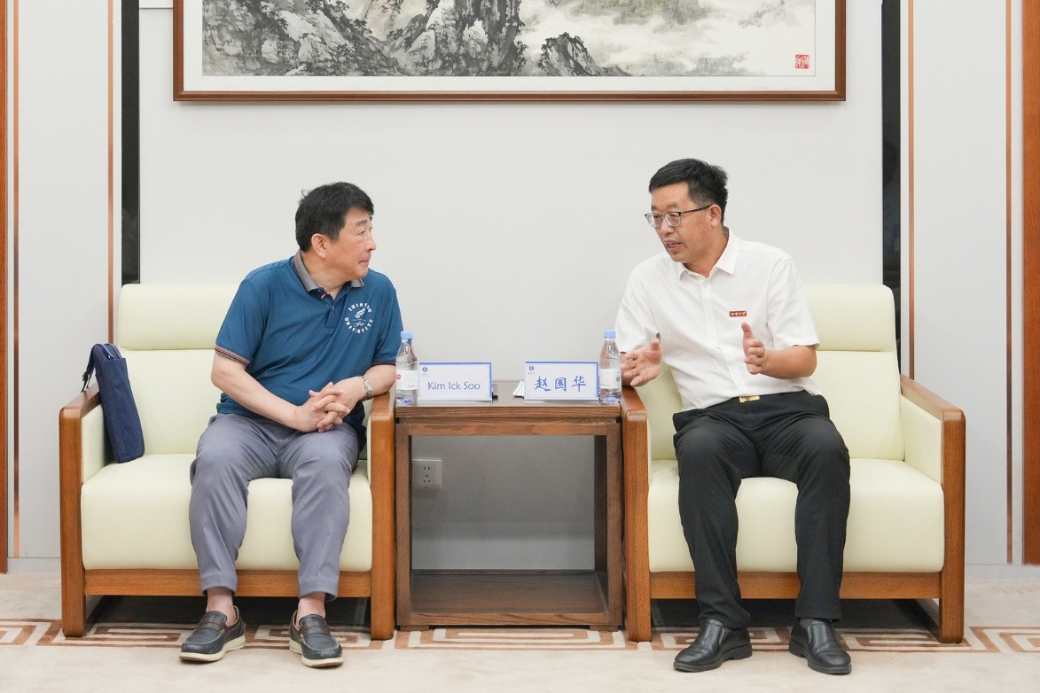 赵国华对金翼水的来访表示热烈欢迎,简要介绍了学校的历史沿革、学科特色和办学规模,回顾了两校交往历史,对信州大学与学校在桑蚕科学等领域开展的合作表示充分肯定,希望双方在科研合作基础上,在学生联合培养、师生交流等方面开展更宽领域、更深层次合作。金翼水对学校的热情接待表示感谢,介绍了双方在蚕桑纺织专业方面取得的丰硕合作成果。他表示,信州大学与第一版主 合作交流历史悠久,成绩突出,未来将继续推动两校合作不断发展,加强校际间的交流互访。