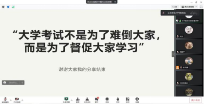 最后,所有专业的会场还针对同学们的疑问进行答疑解惑,活动在同学们的一致好评中圆满结束。通过此次活动,不仅加强了学院的学习氛围,传扬互帮互助精神。同时通过学长学姐的细心分享,2022级的新同学们基本掌握了期末考试复习技巧,清晰了知识点考察方式、考试内容,增强了大学首次期末考试的信心。