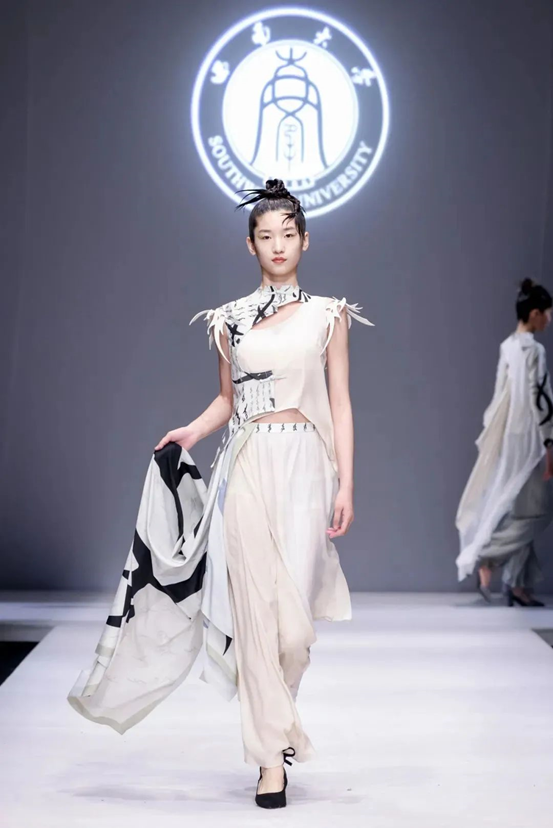 学院服装与服饰设计专业基于西部大开发战略,积极融入“一带一路”建设和长江经济带发展战略,以加强成渝双城经济圈建设为牵引,结合新时期国际设计学趋势和区域文化的特点,形成了科学与艺术多学科交叉的面向产业和行业重大需求的办学特点,在现代服装创新设计、非物质文化遗产传承与创新、数字化智能化高性能服用装备方面形成了明显的特色和优势,不断完善育人体系,落实立德树人根本任务,人才培养质量不断提升,在本次发布会中荣获2023中国国际大学生时装周人才培养成果奖,毕业生蒋檬黛的作品荣获中国国际时装周可持续时尚奖。