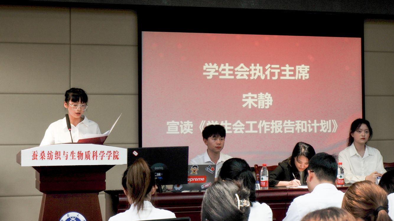 执行主席宋静宣读了《学生会工作报告和计划》,总结并汇报了去年迄今的团委学生会工作情况,同时提出接下来一年相应的工作需求。