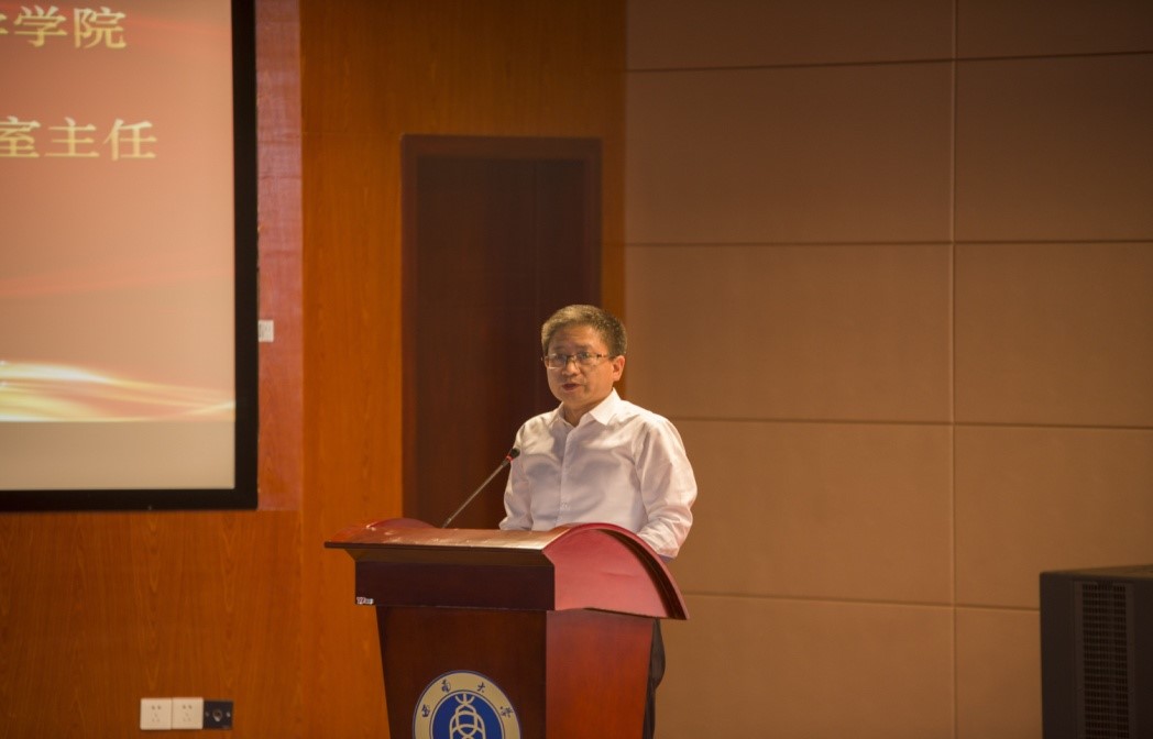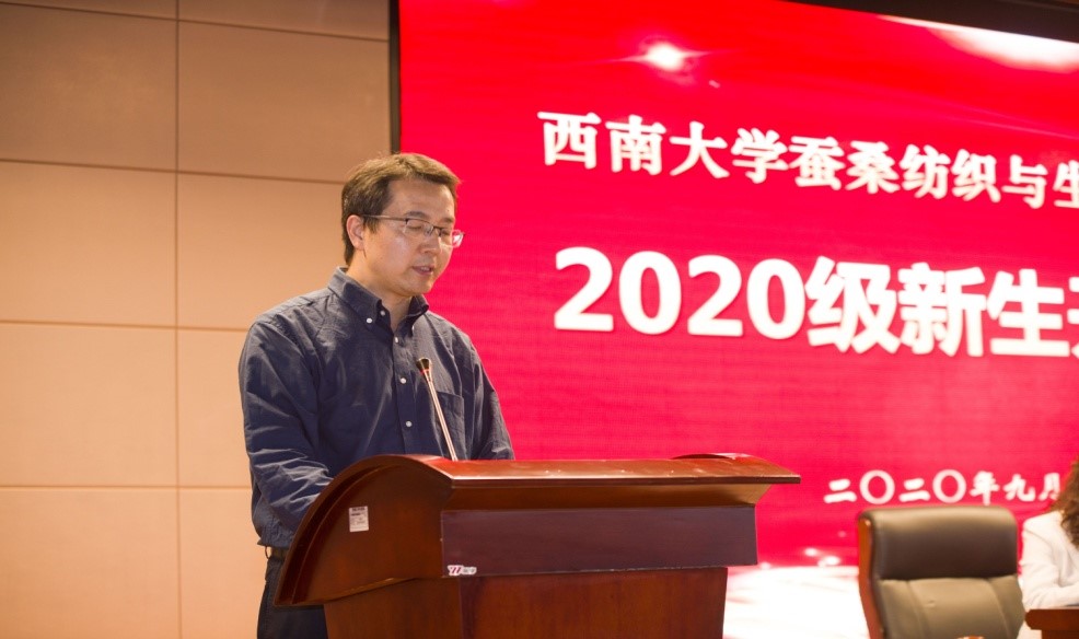 学院院长、党委副书记、家蚕基因组生物学国家重点实验室主任代方银教授向全体新生详细介绍了学院学科专业、师资队伍、办学条件、科学研究、对外合作与交流等情况。要求全体新生坚定学业自信和学院自信,努力成就未来自信,希望同学们志存高远,努力不懈,不负重望;珍惜时间,刻苦专研,勇于实践;注重休养,德才兼备,身心和谐,成长为合格的、优秀的第一版主 学子和事业接班人。