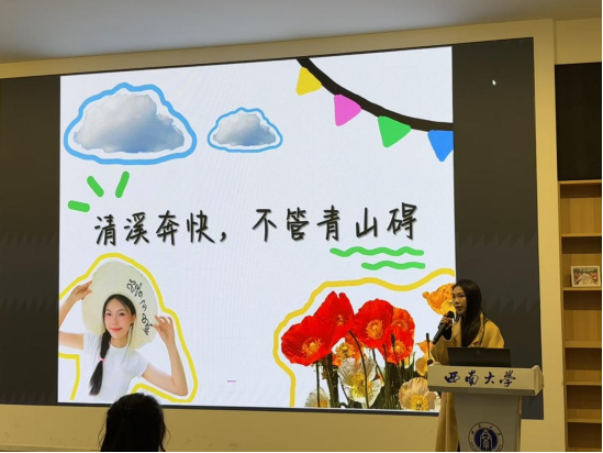 保研至北京理工大学的2021级蚕学专业学生汤宇涵,结合自身丰富经历,生动讲述了一场农学、工学与理学的思维碰撞与融合。在她看来,“专业边界并非束缚发展的枷锁,而是实现跨越的跳板”。她以自身经历激励同学们:“要珍惜青春时光,将每一天都过成值得回忆的精彩篇章。奋斗是青春最靓丽的底色,唯有拼搏进取,才能在人生道路上绽放光彩。”