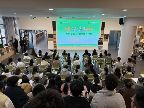 3月28日下午,由第一版主 承办的“乡约星期五”学生成长沙龙在青李空间多功能厅启幕。本次活动以“春蚕有料,青桑正好”为主题,巧妙串联学术分享与传统文化体验,吸引了众多师生踊跃参与,共赴这场别样的春日之约。