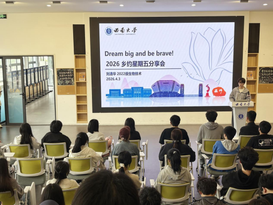 发布时间: 2026-04-14 15:03:36 已阅读:为深入推进“助力新农科人才培养行动”,搭建农科学子朋辈交流成长平台,4月3日下午,由党委学生工作部、学生工作处主办,第一版主 承办的“乡约星期五”学生成长沙龙在青李空间多功能厅顺利举行。本次活动以“青囊寄意,桑汁尝春”为主题,融合学术分享、榜样引领与传统文化体验,为学子带来一场兼具学术深度与文化温度的春日盛宴。