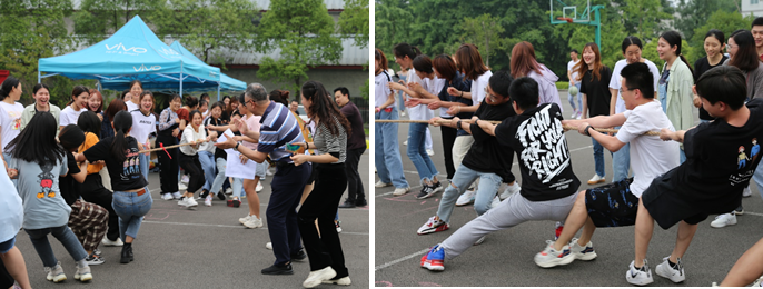 研究生导学团队趣味运动会在“团结就是力量”拔河比赛中拉开帷幕,随后是“坚持就是胜利”跳长绳,“两人三足”重走“长征路”,“勇往直前”背对背夹气球接力、“百折不挠”定点投篮以及“自强不息”快乐套圈比赛,参赛的老师和研究生情绪高昂,齐心协力,奋勇争先,在团结协作中取得一个又一个胜利。活动现场,加油声、呐喊声、欢笑声不绝于耳,展现了学院研究生生机勃勃、积极向上的精神风貌。比赛结束后,由曾鸣鸣副书记为获奖团队颁发奖品,本届研究生导学趣味运动会圆满落下帷幕。